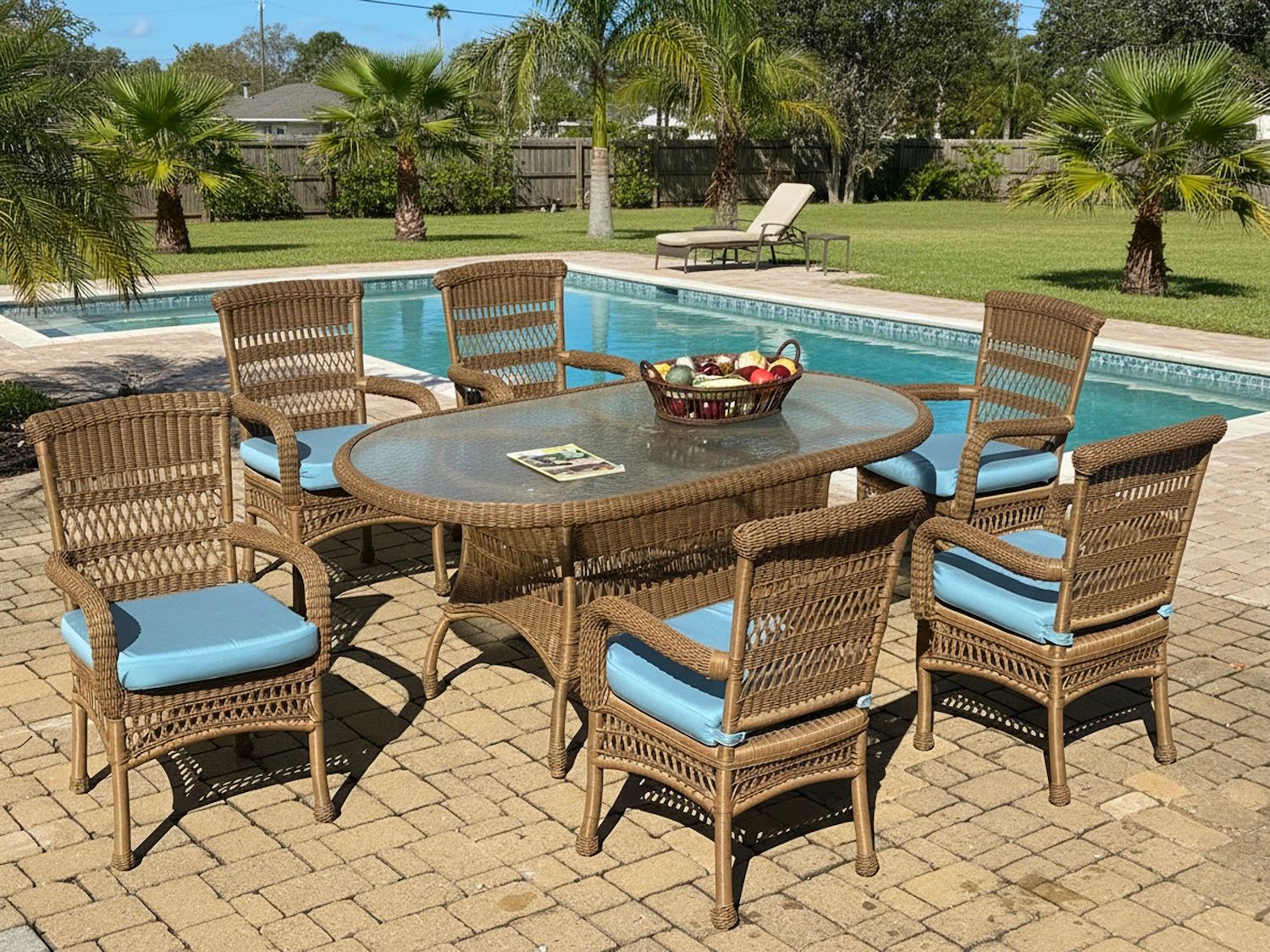Set of Seven includes: Oval Table, 6 Arm Chairs