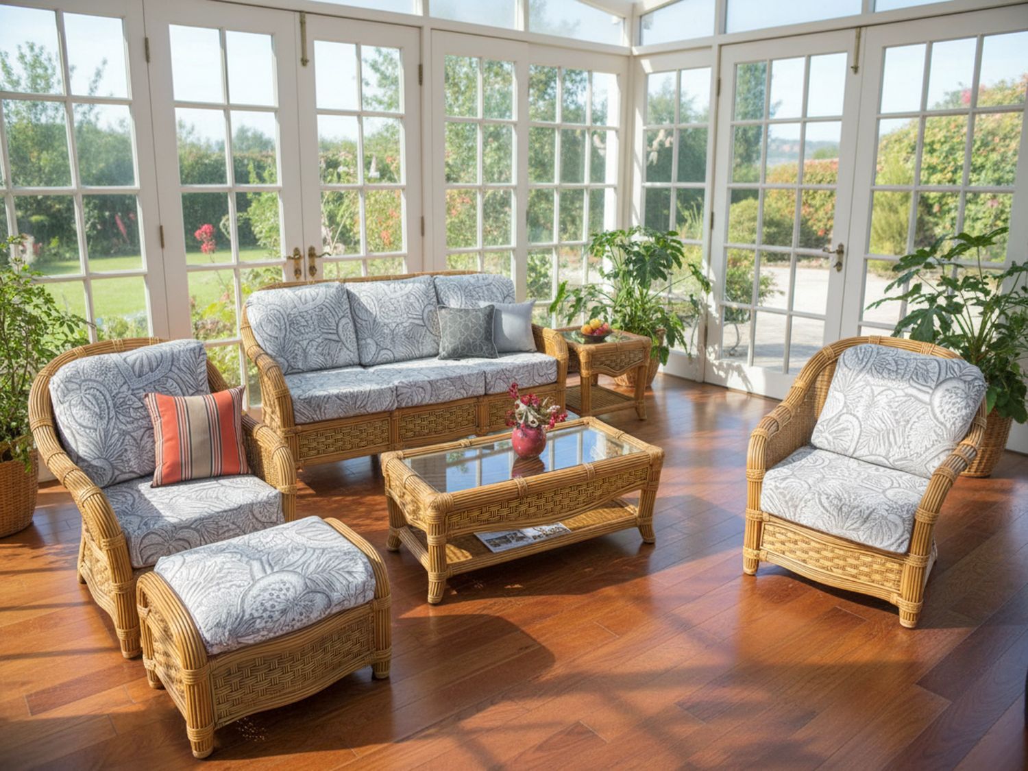 This luxurious handwoven peel rattan, seating group is highlighted with wide arms and legs that are skillfully handcrafted using rows of the best quality pencil rattan. Oakwash or Whitewash finishes. 27"W x 22"D x 22"H