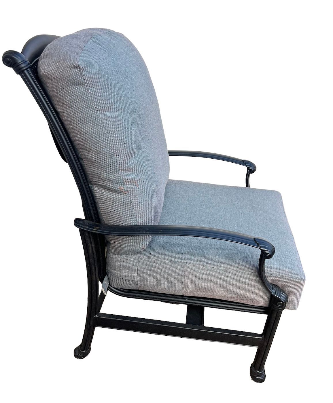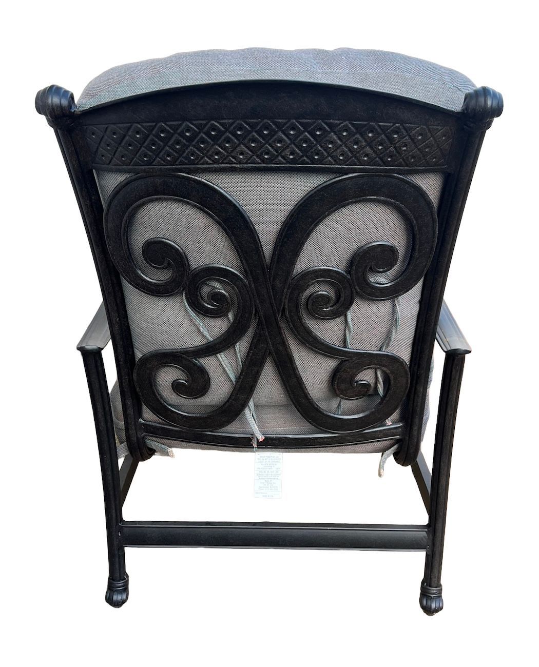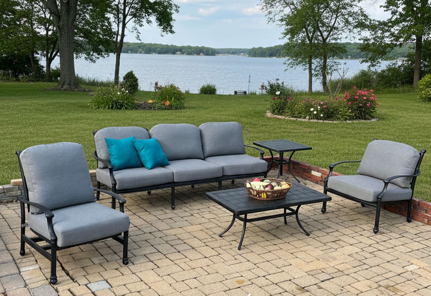 Crafted of high quality cast aluminum our Concord Collection will provide you with years of durable outdoor use. The distinctive scrollwork styling combined with an embossed crisscross pattern at the top of each seat back makes this one of our most attractive outdoor collections. The rich Bronze finished cast aluminum is easy to care for and has the look of antique wrought iron. This is a deep seating group and includes outdoor cushions (for fast drying) in your choice of premier outdoor fabris.