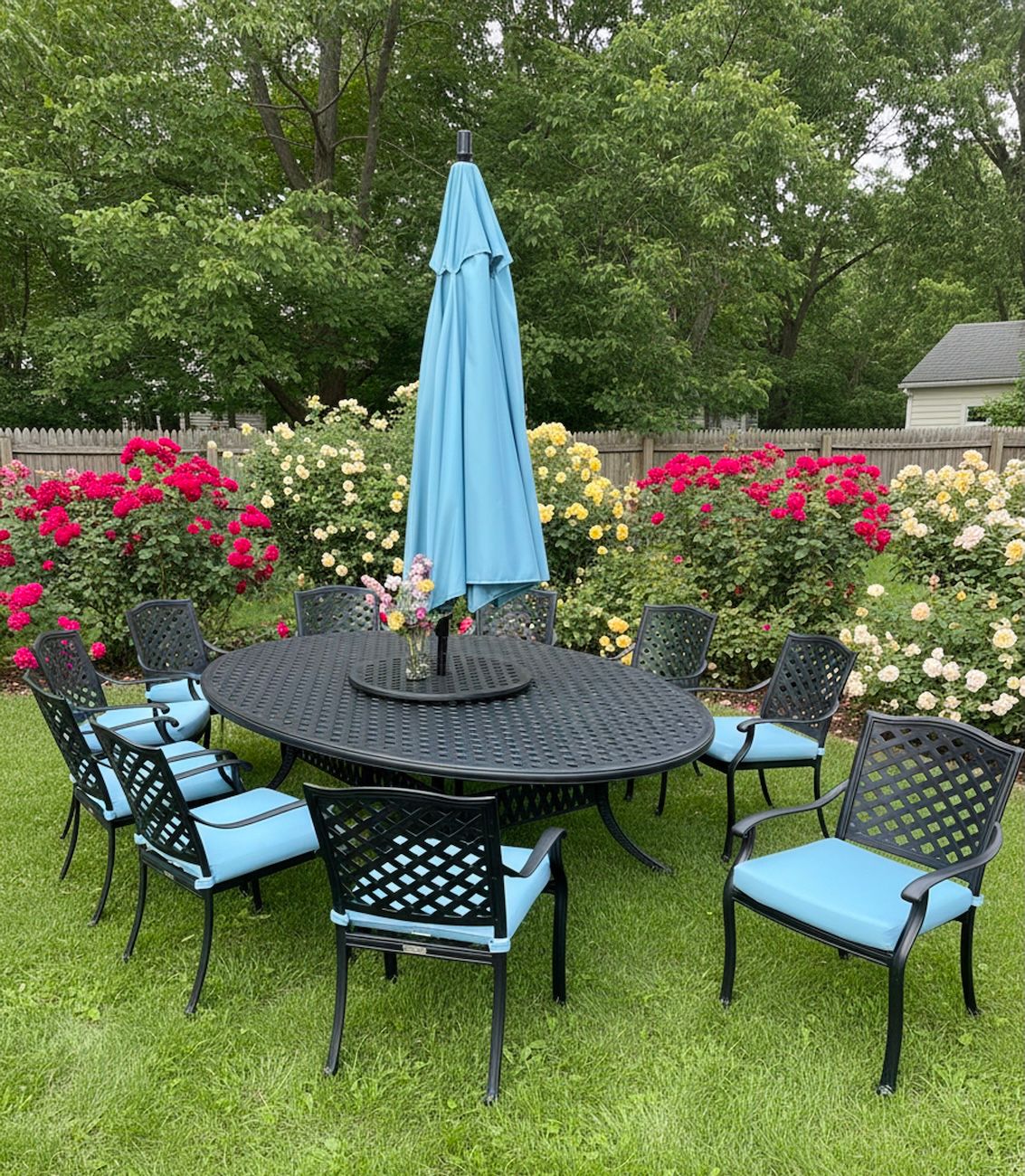 Whether it's a light outdoor lunch, snack or a more formal diner, our matching Lancaster Dining Sets makes for the finest in outdoor entertaining. This rich Bronze finished cast aluminum is easy to care for and with its classic cross-weave styling, has the look of antique wrought iron. Dining chairs include outdoor seat pads in your choice of premier outdoor fabrics.