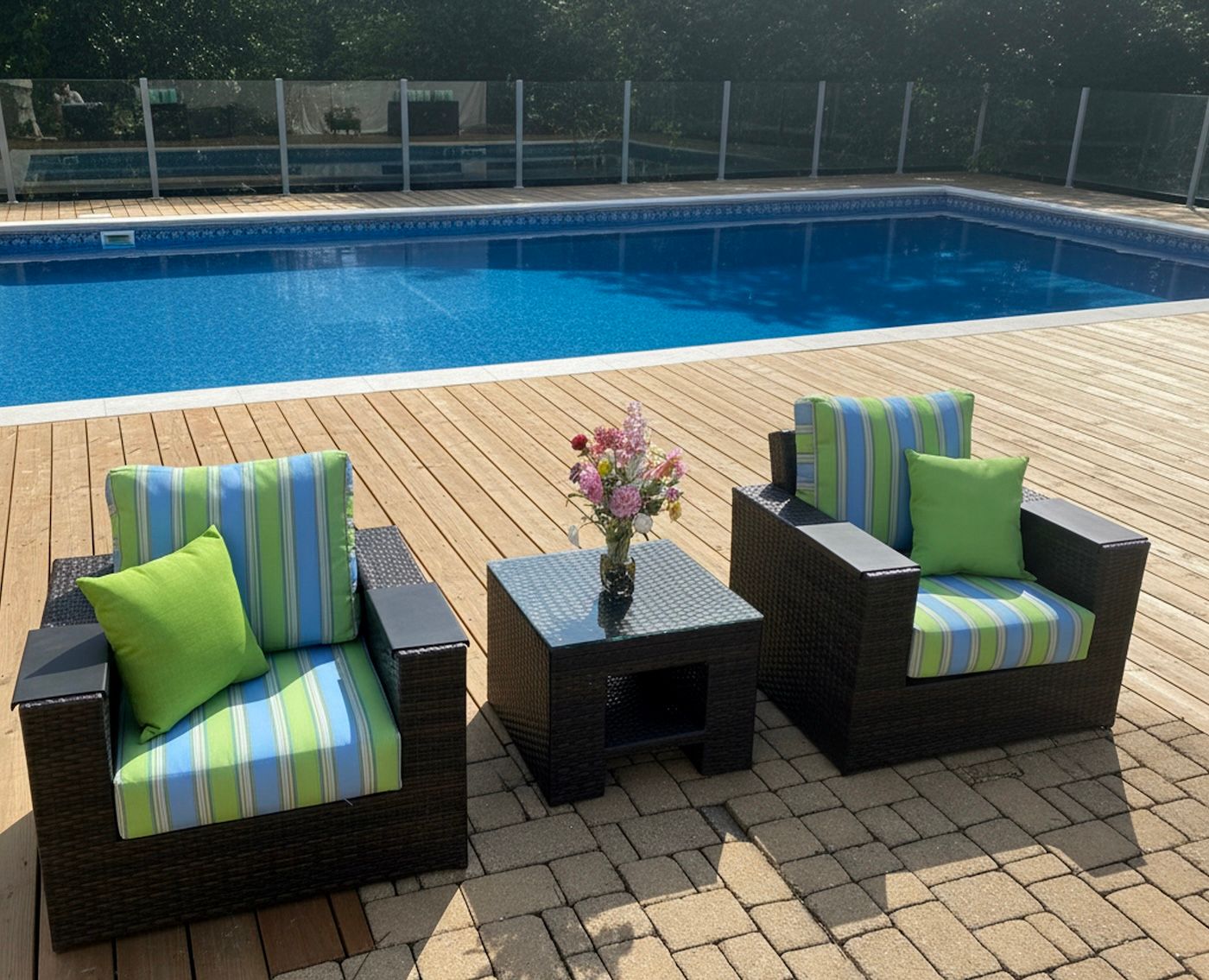 With it’s wide arms, this collection would fit perfectly into your more elegant outdoor area. Each piece is handcrafted of rustproof tubular aluminum frames and handwoven vinyl/resin fibers. This “All Weather” set includes cushions in your choice of indoor/outdoor fabric. Sunbrella fabrics available for an additional charge. Set is available in Dark Cherry finish only.